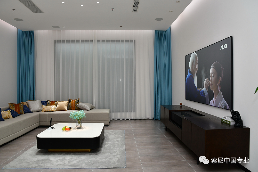 快思聪智能家居(苏州旗舰店)搭建有多个展厅,分别使用了索尼专业系统集团旗下的超短焦激光投影机(激光电视)、家庭影院投影机和4K索尼商用显示器